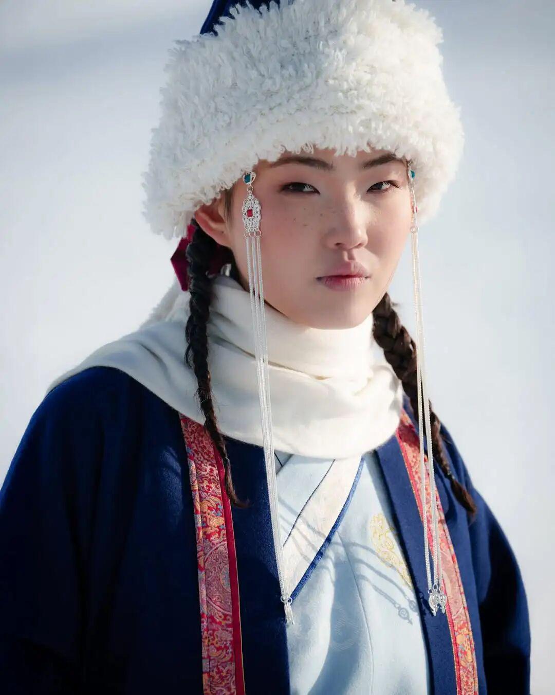 本次队服由Goyol Cashmere设计,整体在传统蒙古族传统长袍“德勒”的基础上做了侧开叉的创新。高立领和交叠前襟搭配丝质滚边和传统的羊角纹保留了传统蒙袍的结构,细节在冰原上格外鲜活。这是那种——站在雪原上,一眼就不会认错的游牧民族文化自信。
