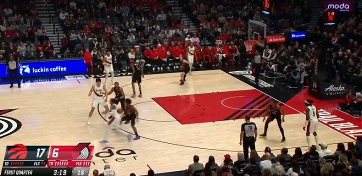 杨瀚森弧顶拿球 和乐福准备配合 简单交球失误了…