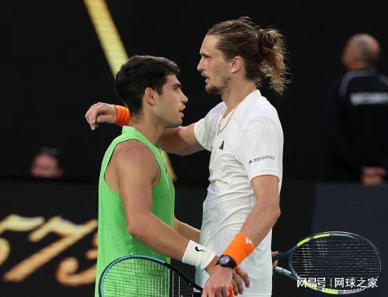 北京时间昨晚,2026赛季澳大利亚网球公开赛结束了男单两场半决赛,头号种子、世界第一阿尔卡拉斯克服突发伤情,苦战5小时27分钟,破掉德国人小兹维列夫的发球胜赛局,最终以6-4 7-6(5) 6-7(3) 6-7(4) 7-5险胜对手,职业生涯首进澳网决赛,实现了四大满贯均进决赛的壮举,连续四个大满贯跻身决赛,将向全满贯发起冲击。